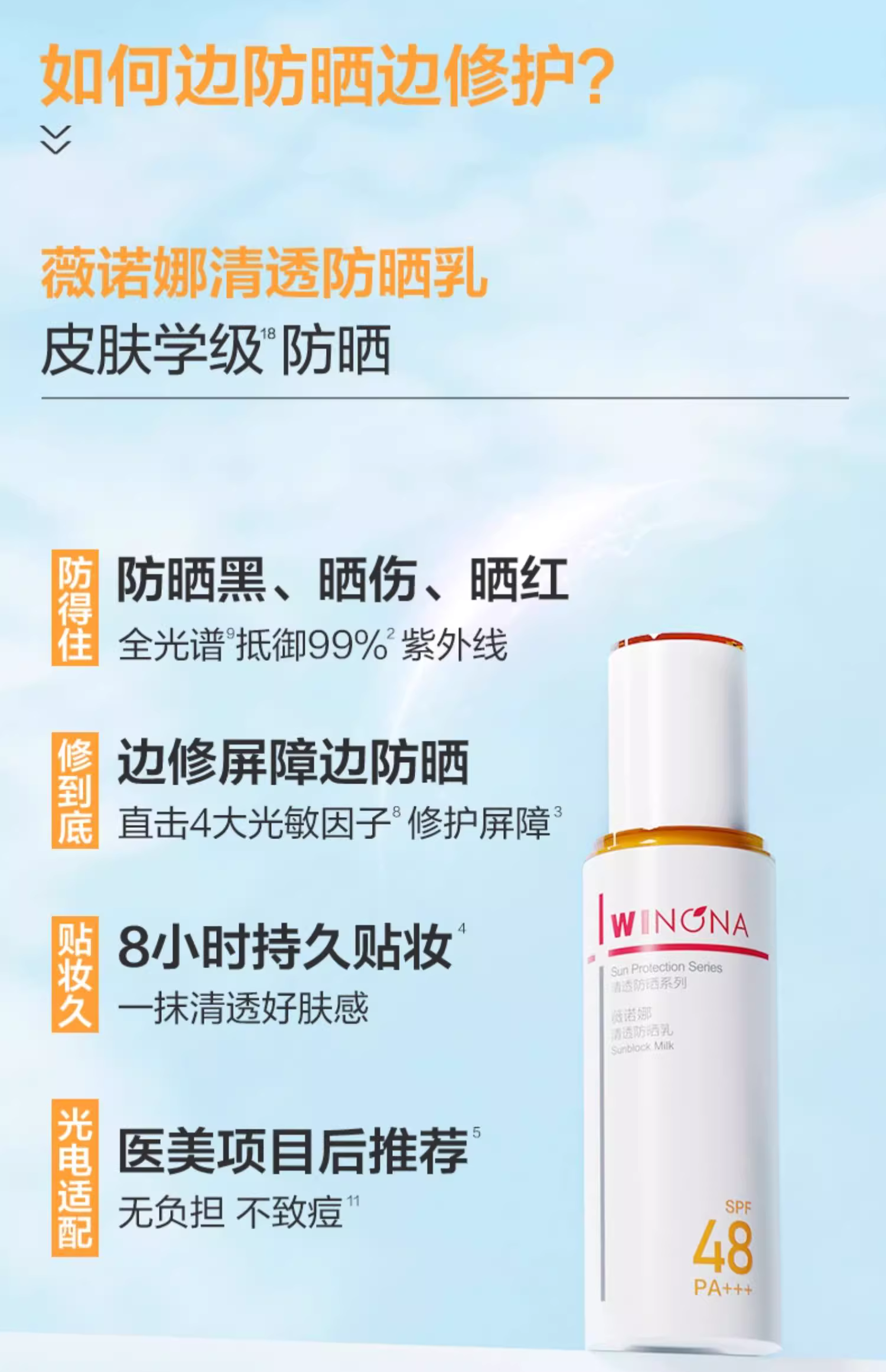 薇诺娜清透防晒乳敏感肌隔离霜军训面部清爽户外