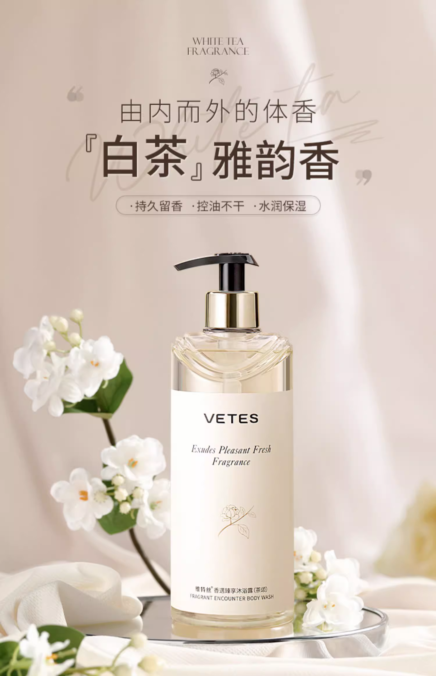 持久留香72小时香水除螨沐浴露白茶香洗发套装官方正品品牌男士女