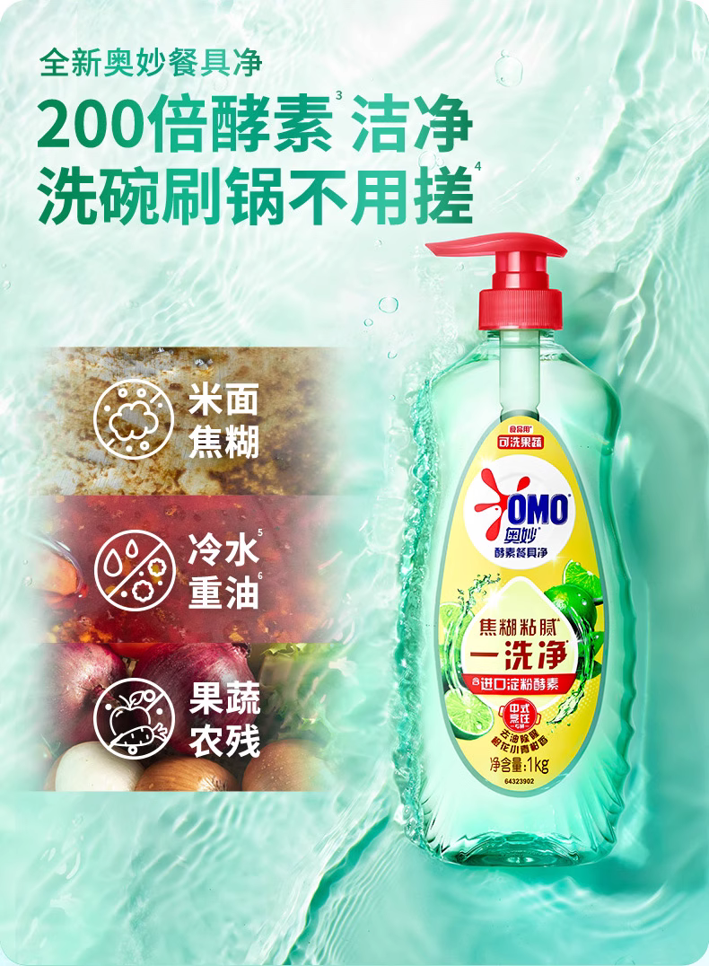 奥妙酵素果蔬食品用净洗洁精洗涤餐具蔬果去农残小青柑多组套可选