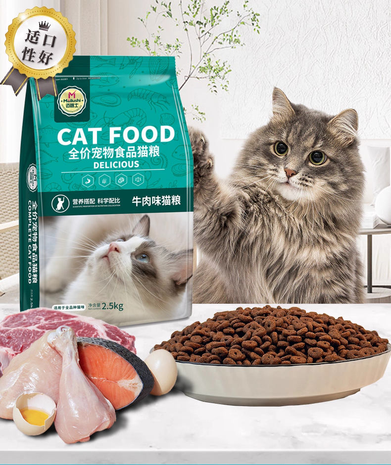 迈路士猫粮牛肉味鱼肉味成猫幼猫通用全价猫粮营养美味均衡益生元