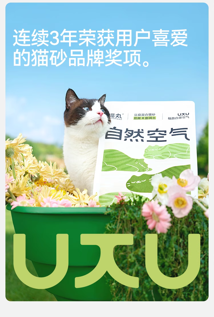 福丸自然空气豆腐猫砂膨润土混合砂除臭防臭砂低尘不粘底福鼎白茶