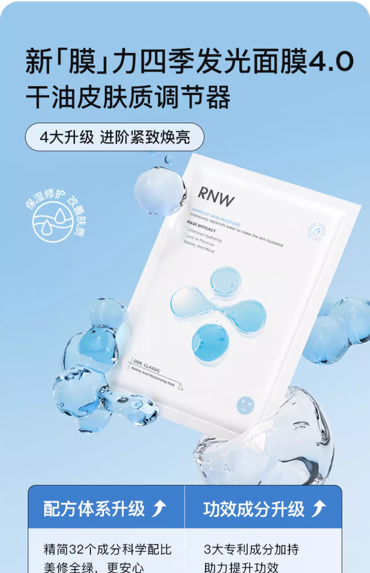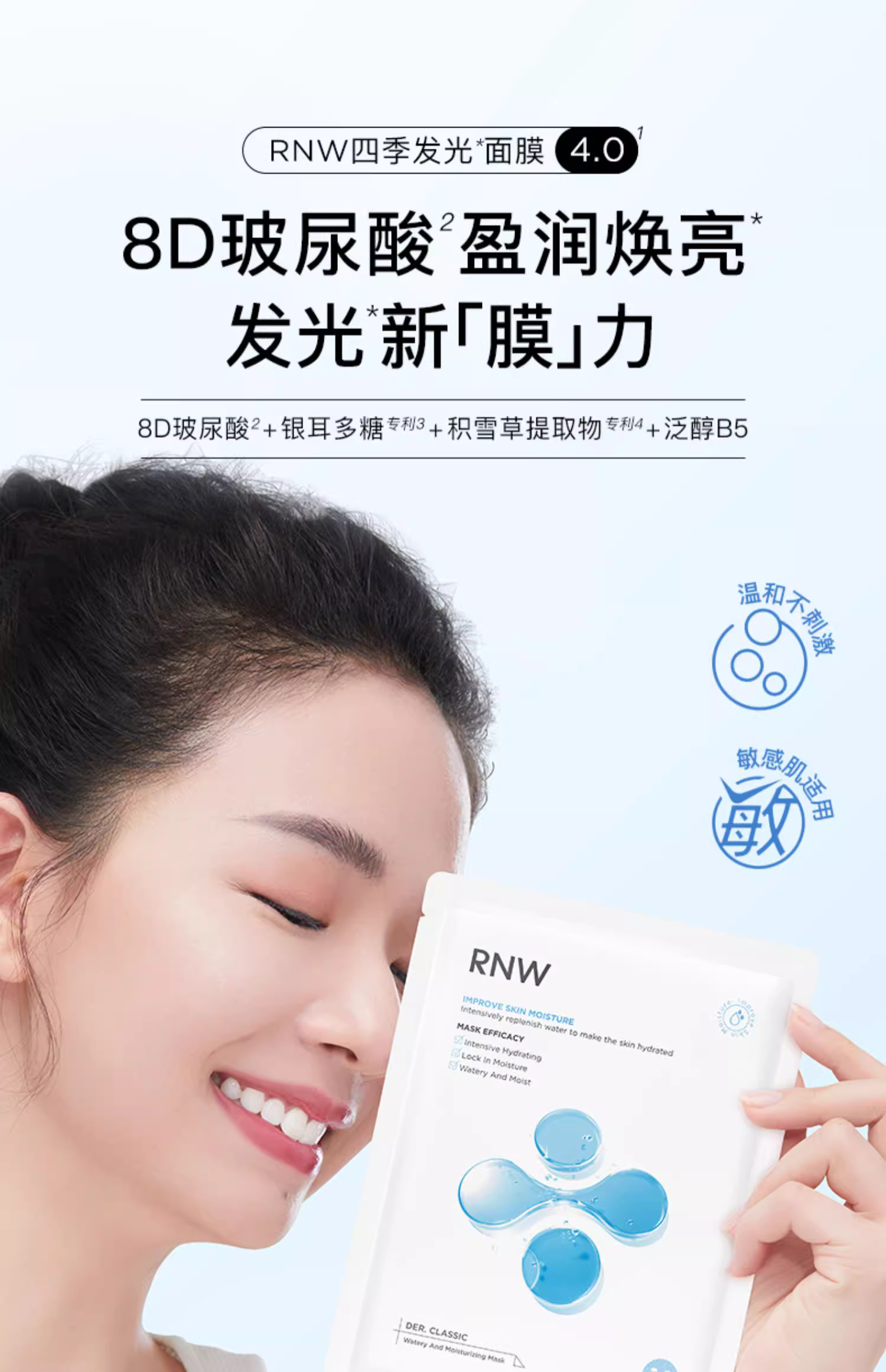 RNW面膜男女补水修护保湿舒缓玻尿酸紧致深层3盒